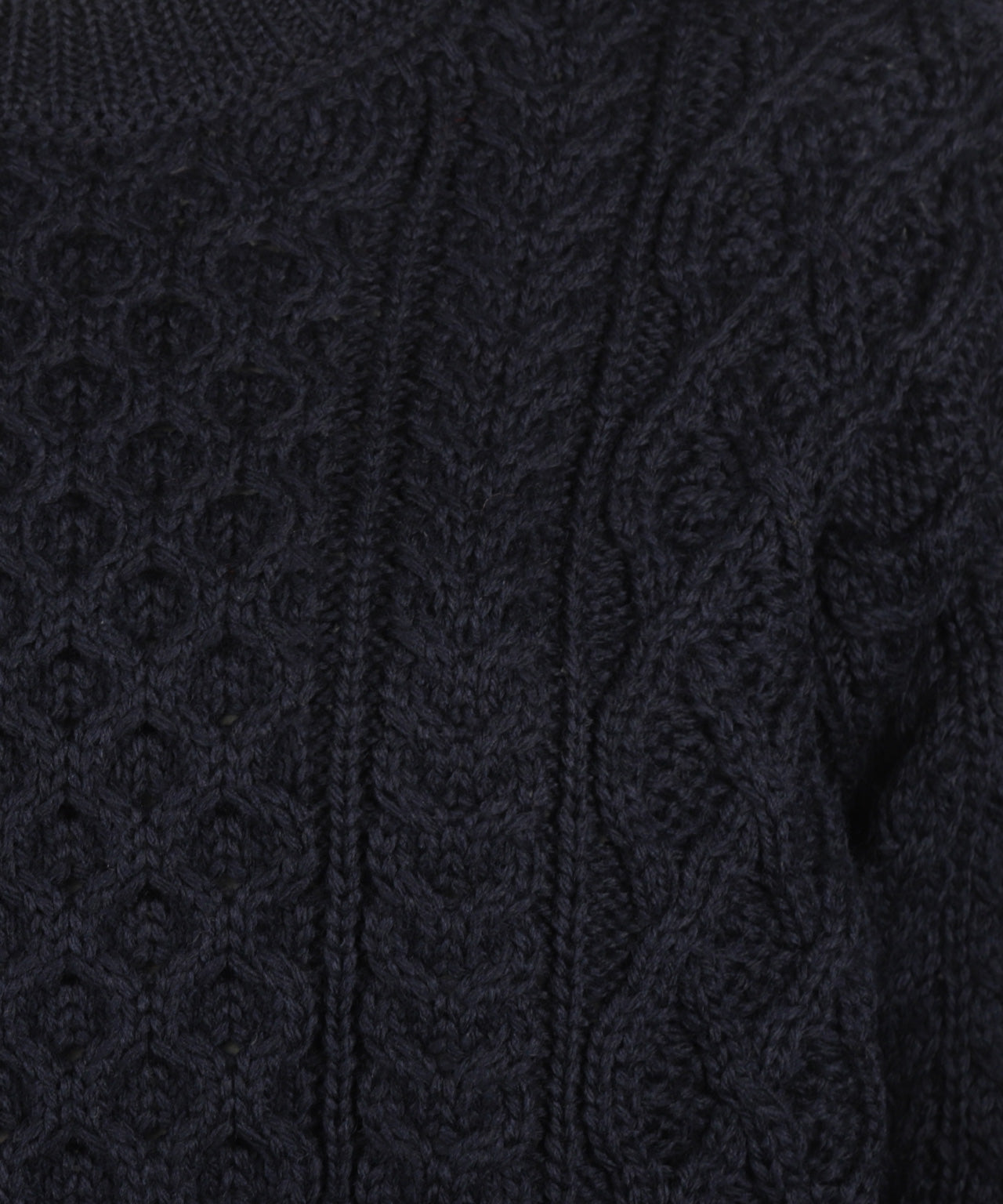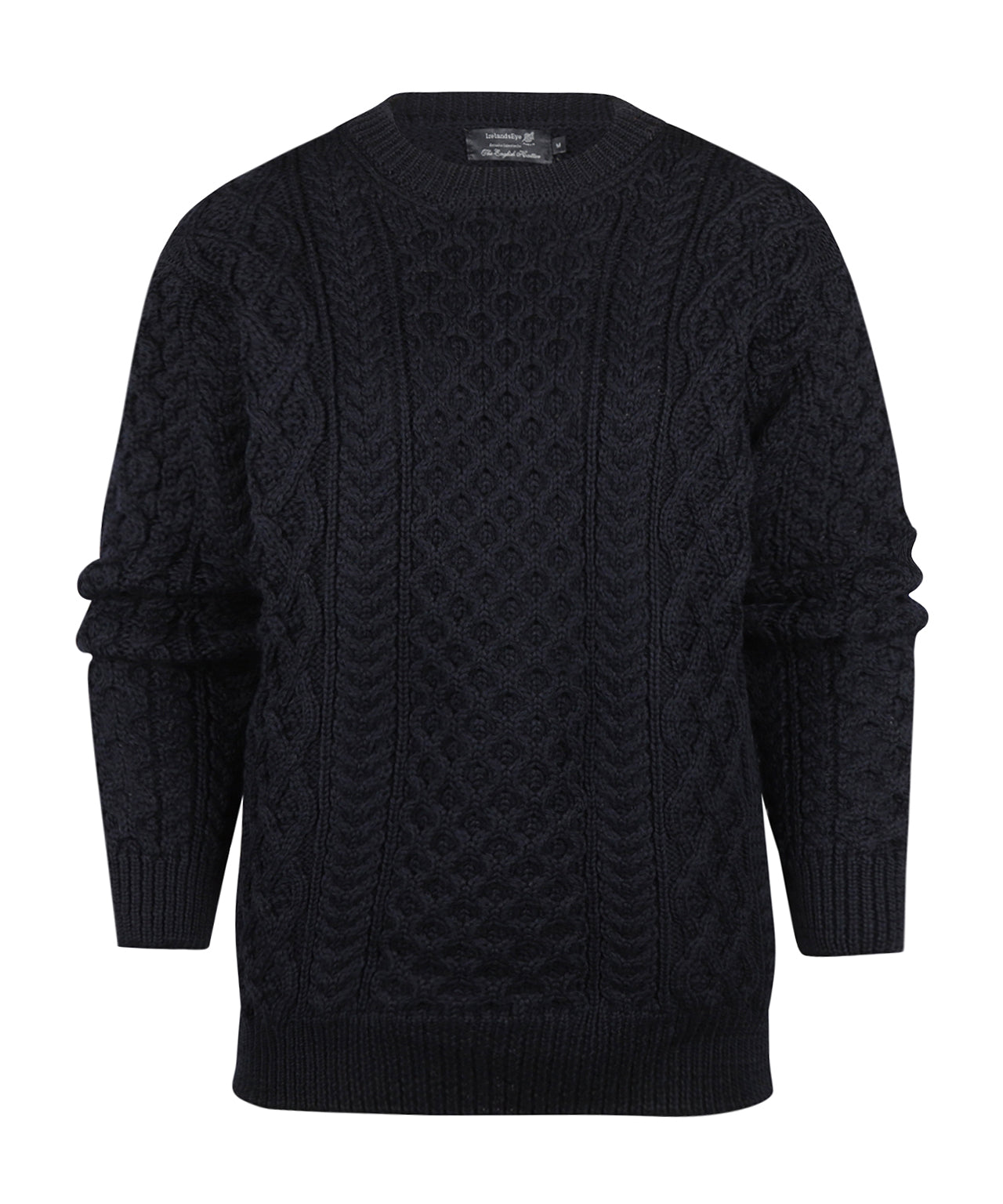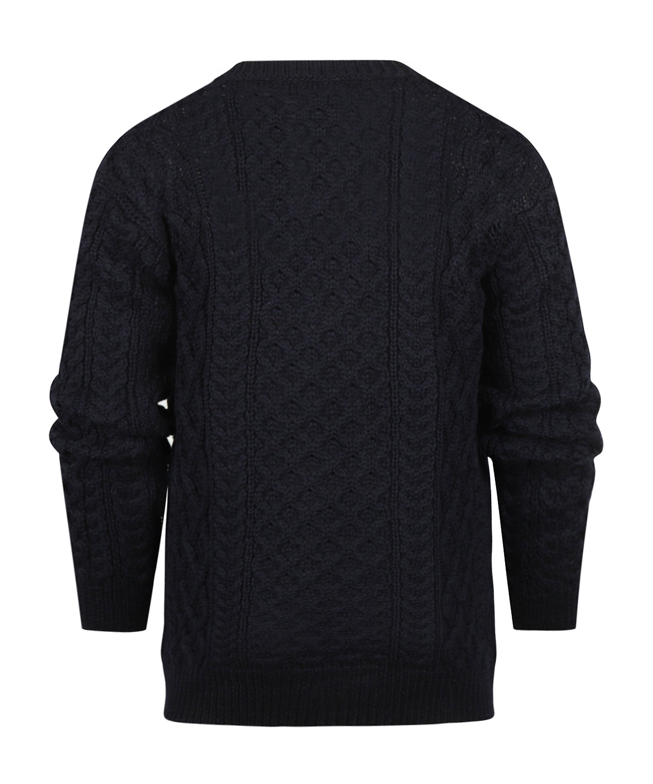 Kabeltrui uit Ierland met een ronde hals. Deze truien worden gemaakt in Dublin.