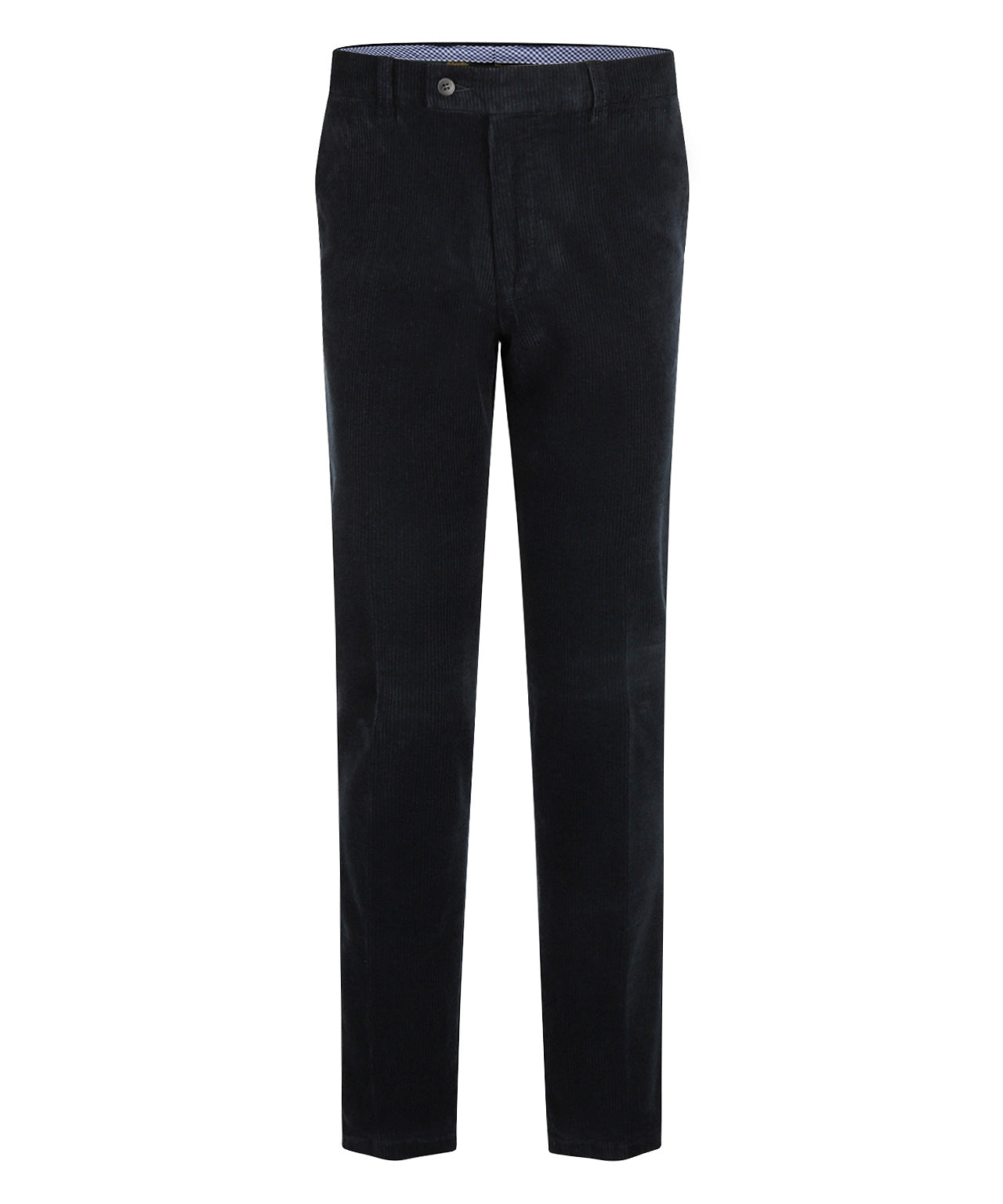 Klassieke corduroy brede rib pantalons zonder bandplooi en omslag. De pantalon heeft diepe zakken en lussen rond de taille voor een riem. De zakken op de achterzijde zijn voorzien van knopen. De pantalon is gemaakt van 97% katoen met 3% elastan voor een comfortabele fit.