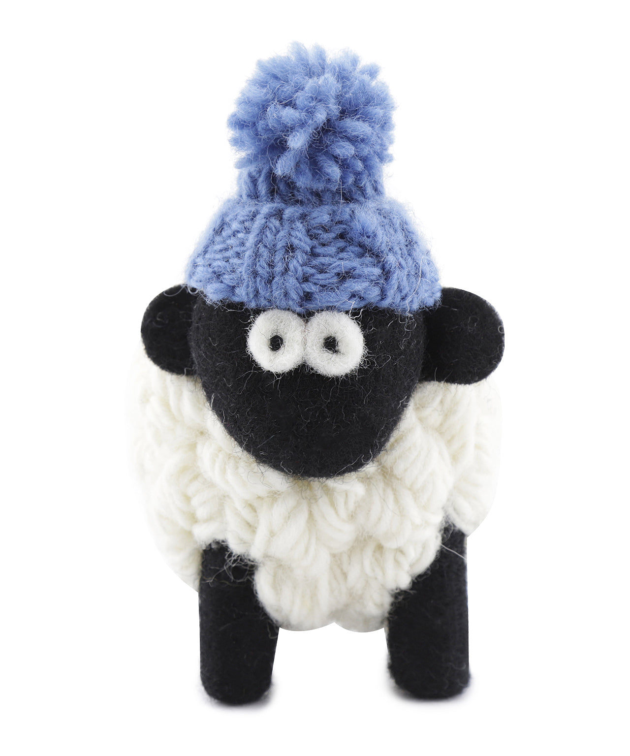 Leuke kleine schaap met een grappige muts. Deze schaapjes zjn ongeveer 10cm hoog en 10cm lang. Ze zijn handgemaakt in Ierland