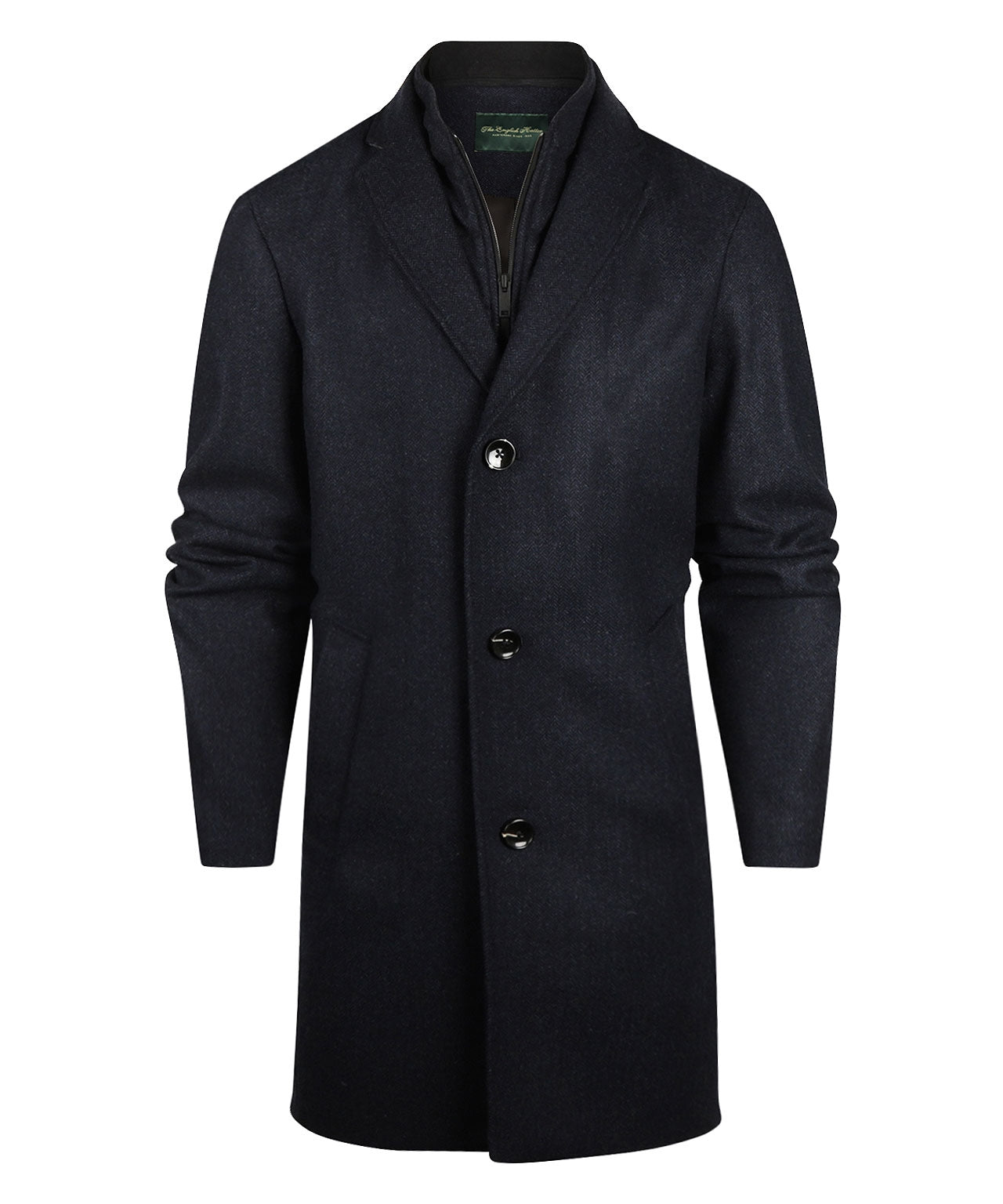 Mantel gemaakt van sterke en warme wolmix. De mantel wordt voor The English Hatter speciaal in Europa gemaakt. De mantel is voorzien van een uitritsbare stormflap, in de binnenzijde vindt u zowel links als rechts een grote binnenzak. De binnenzakken zijn afsluitbaar middels een rits. Op de voorzijde vindt u 2 grote open steekzakken. Deze jas heeft een moderne pasvorm.