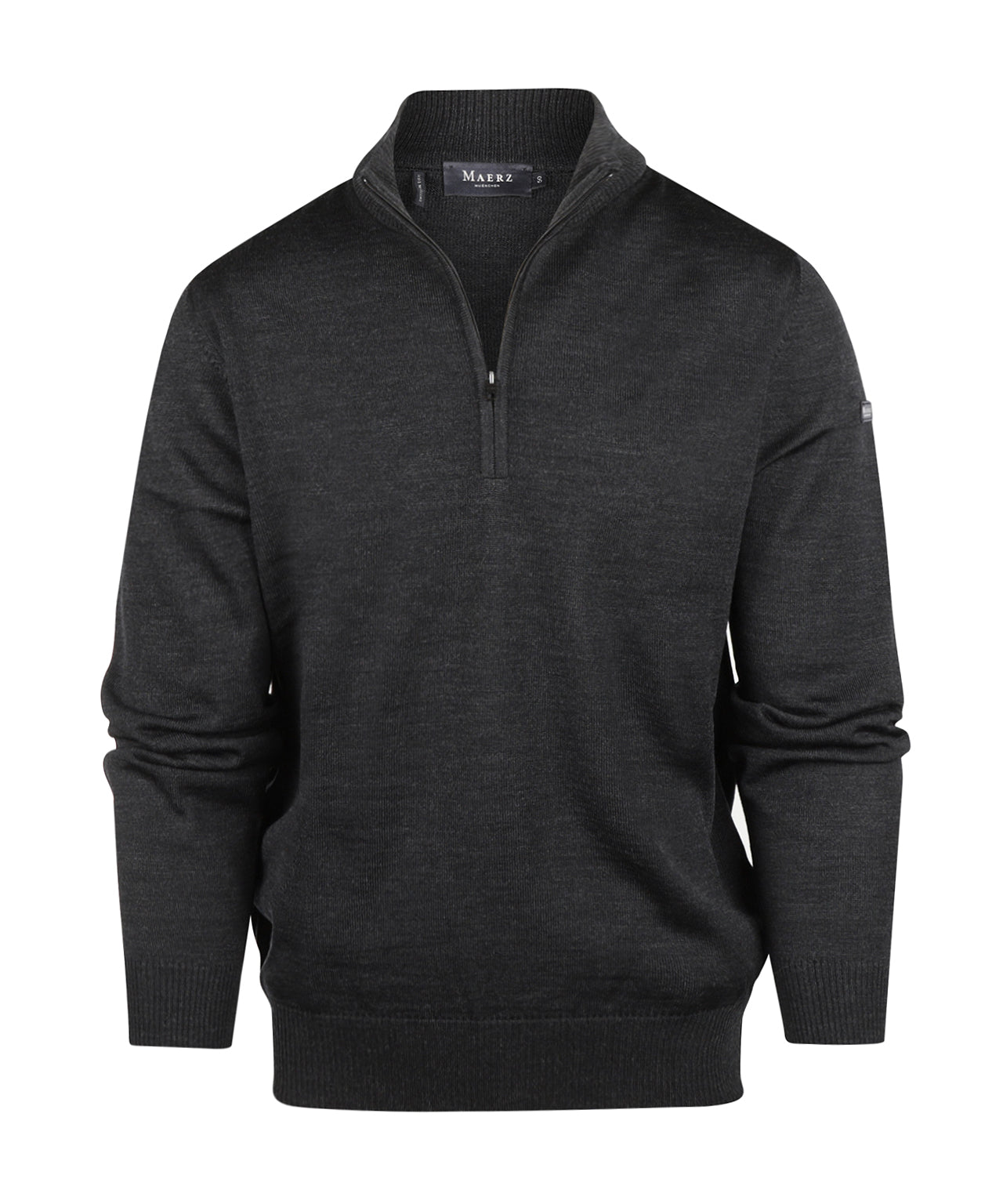 Deze moderne trui met half zip is gemaakt van hoogwaardige merinowol en combineert een eigentijds ontwerp met een klassieke pasvorm. De merinowol zorgt voor hoog draagcomfort, is vochtregulerend, geurneutraal en zowel verwarmend als temperatuurregulerend. Het strakke, klassieke breipatroon en de zachte wolhaptiek worden aangevuld met handgekettelde naden en elastische boorden. Het resultaat is een lichte, aangenaam warme trui van Europese garens, vervaardigd in Hongarije en OEKO-TEX® gecertificeerd.