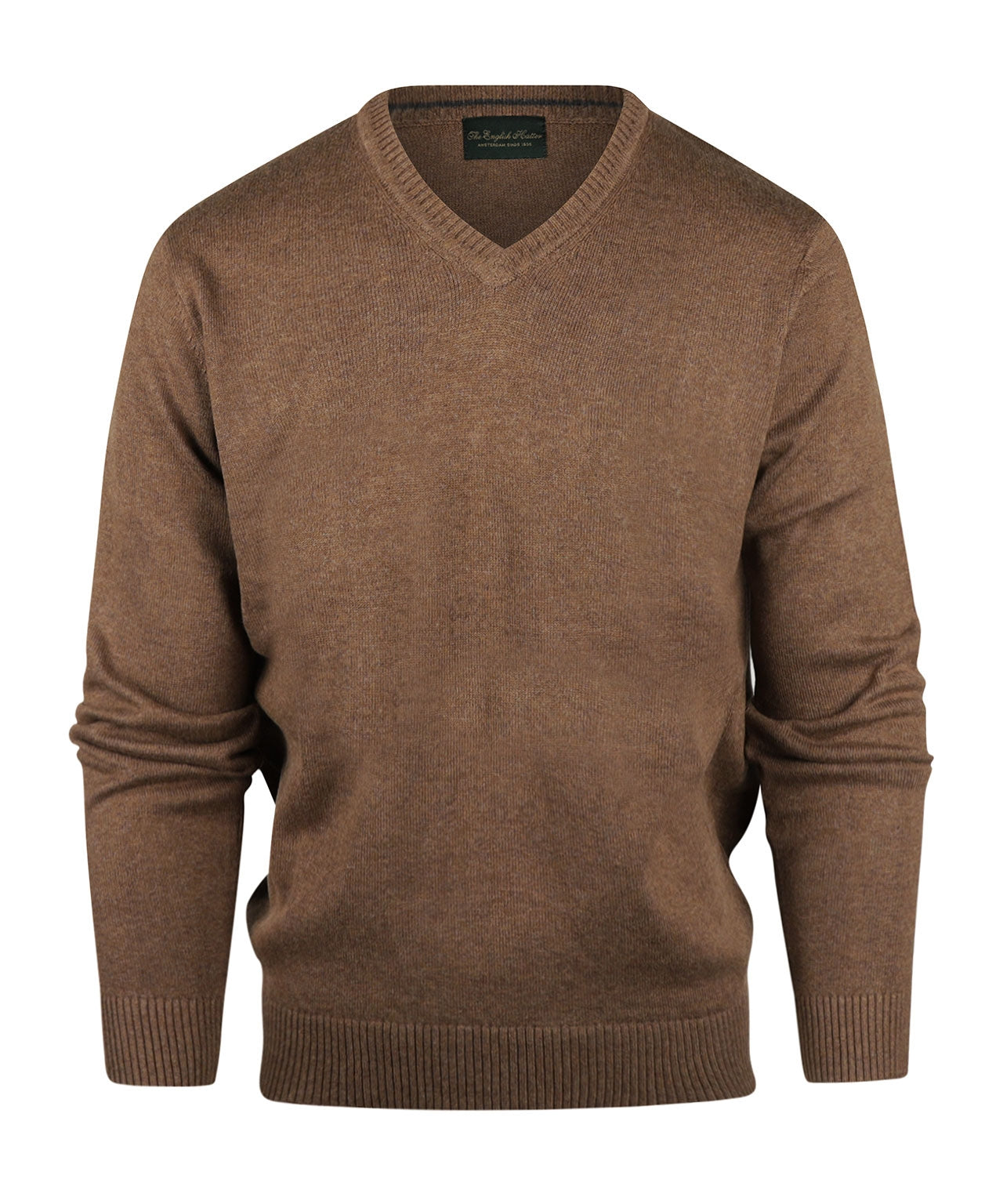 Deze V-hals trui voor heren is gebreid van hoogwaardige katoen. De trui heeft een regular fit, lange mouwen en is afgewerkt met een ribstructuur op de hals en manchetten voor een tijdloze uitstraling. Het materiaal onderscheidt zich door de luxueuze zachtheid en is uitstekend te dragen het gehele jaar door. Een echte klassieker van The English Hatter die Britse stijl uitstraalt.