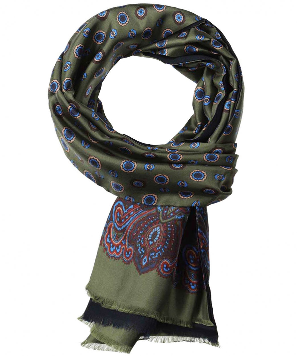 Elegante en stijlvolle sjaal van 100% zijde met een 100% wollen tegenvoering. Hierdoor is sjaal niet alleen elegant maar houdt u ook warm. De lengte van de sjaal is 32cm x 160 cm.