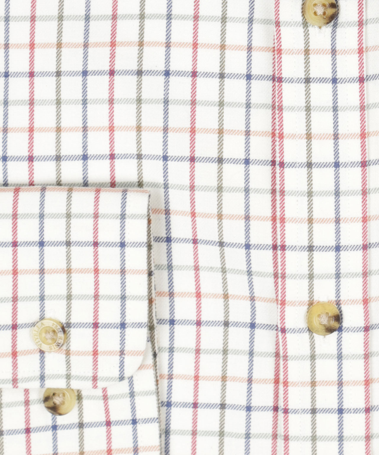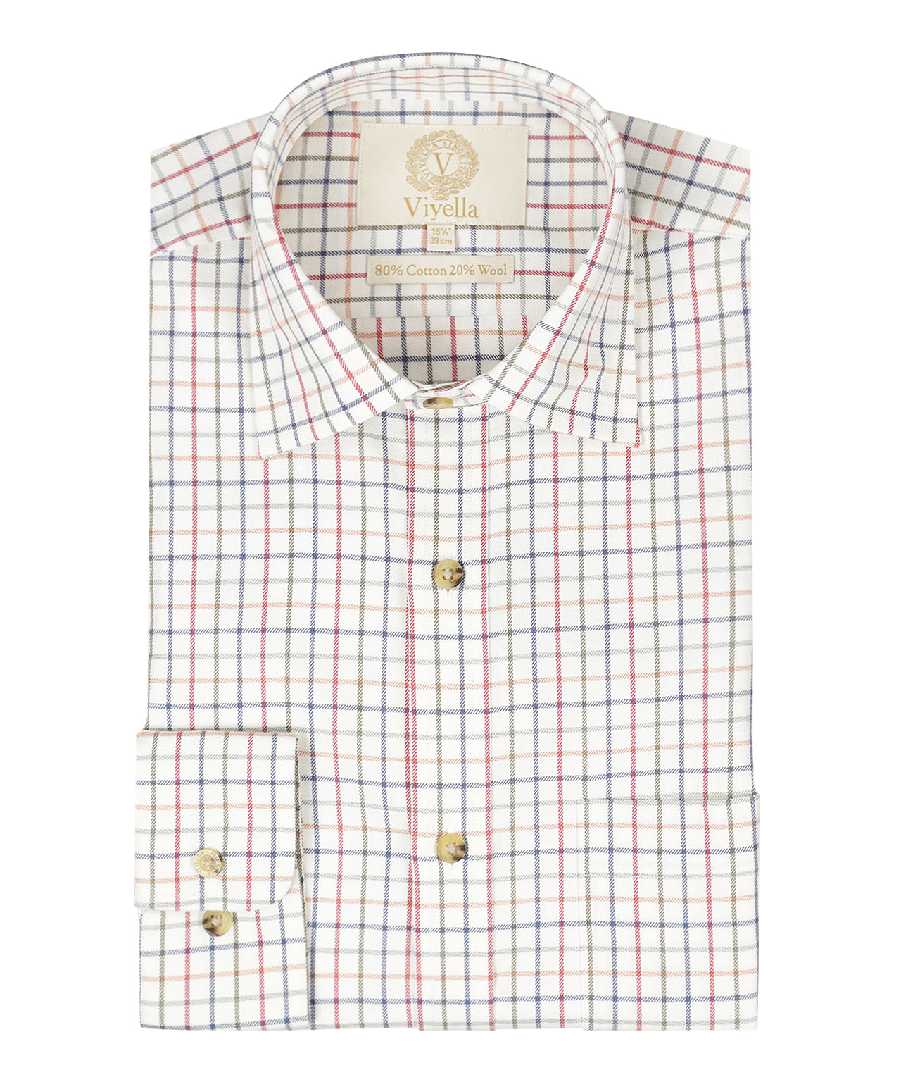 Viyella shirt gemaakt van 80% katoen en 20% wol, voorzien van een klassiek boord en een borstzakje.