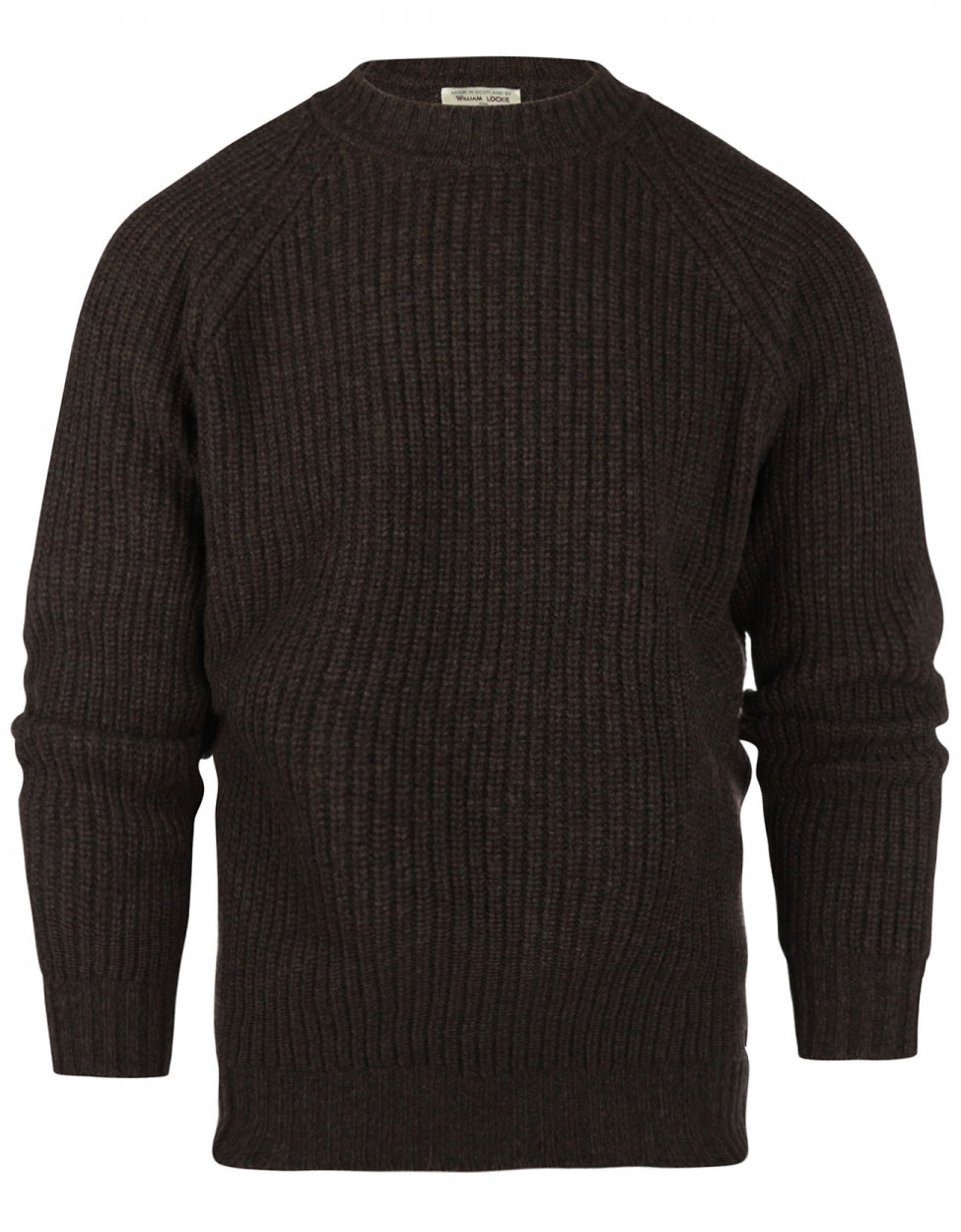 Stoere grof gebreide wollen trui met ronde hals van William Lockie.